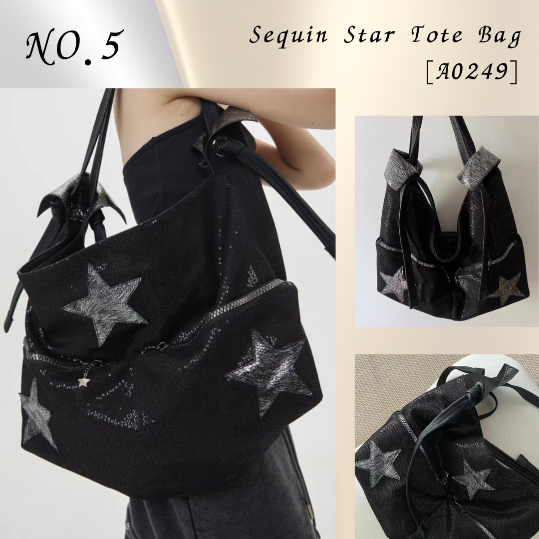 シルバースターが輝く辛口バッグ。シンプルコーデに合わせるだけで存在感が際立つアクセントに。