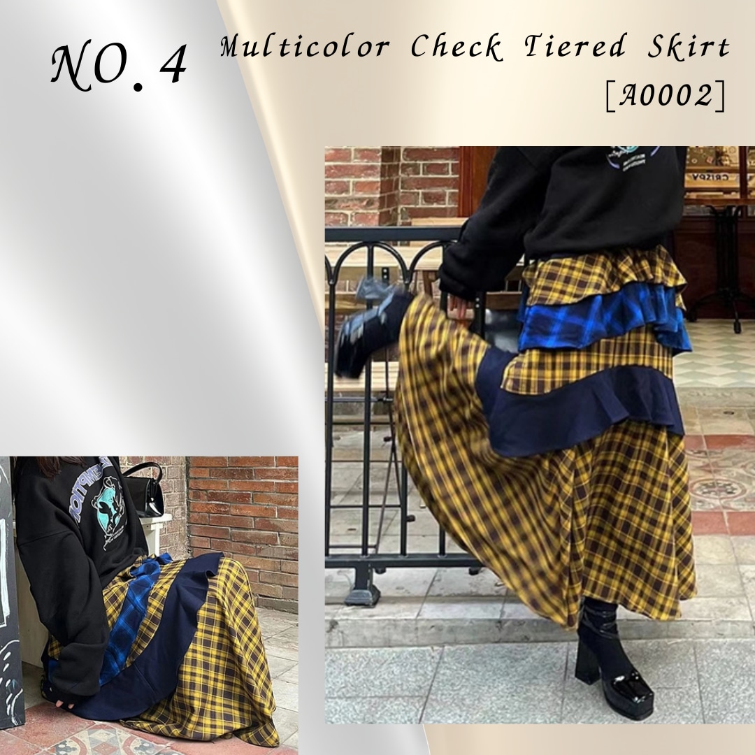 多彩なチェックが視線を惹きつけるスカート。甘すぎない配色で大人の遊び心を表現。