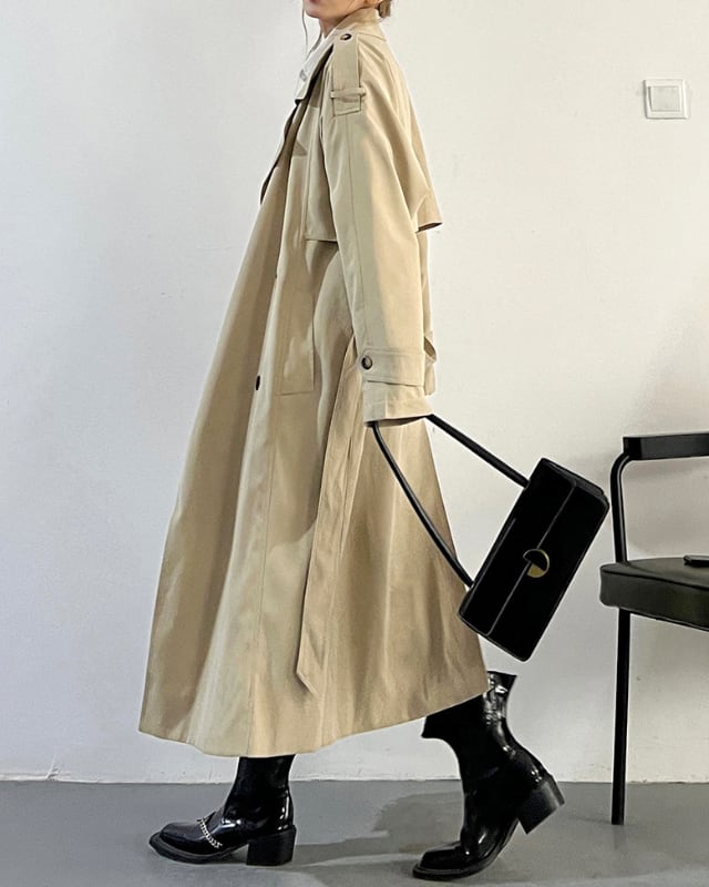 オーバーサイズでトレンド感がありつつ、シンプルで使いやすいトレンチコートです。大人の余裕を感じさせるリラックスしたシルエットで