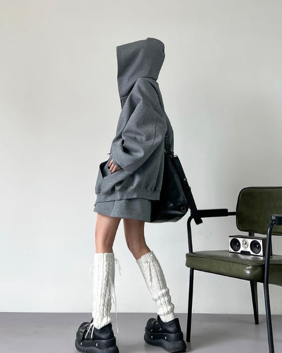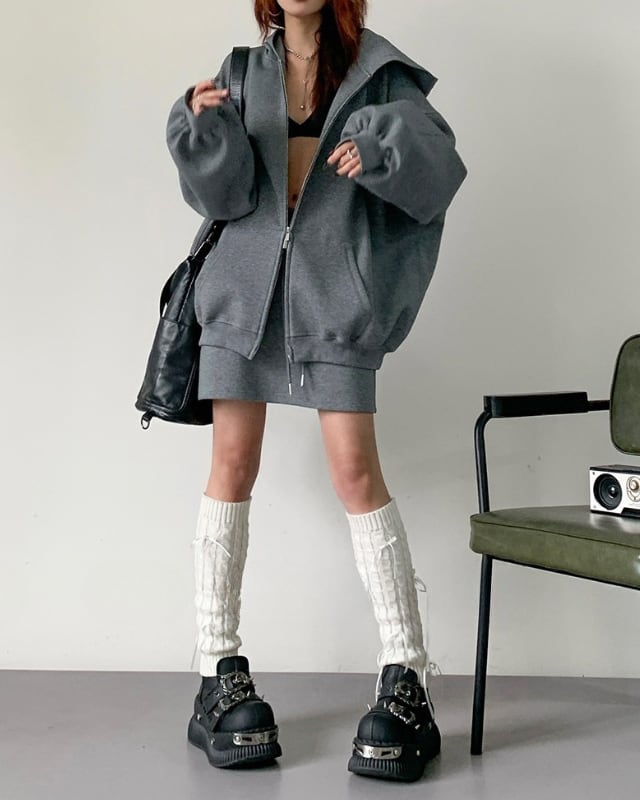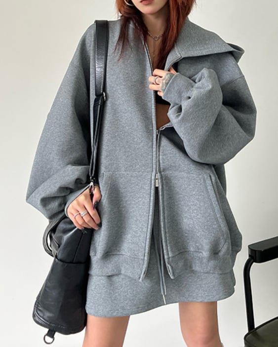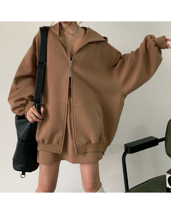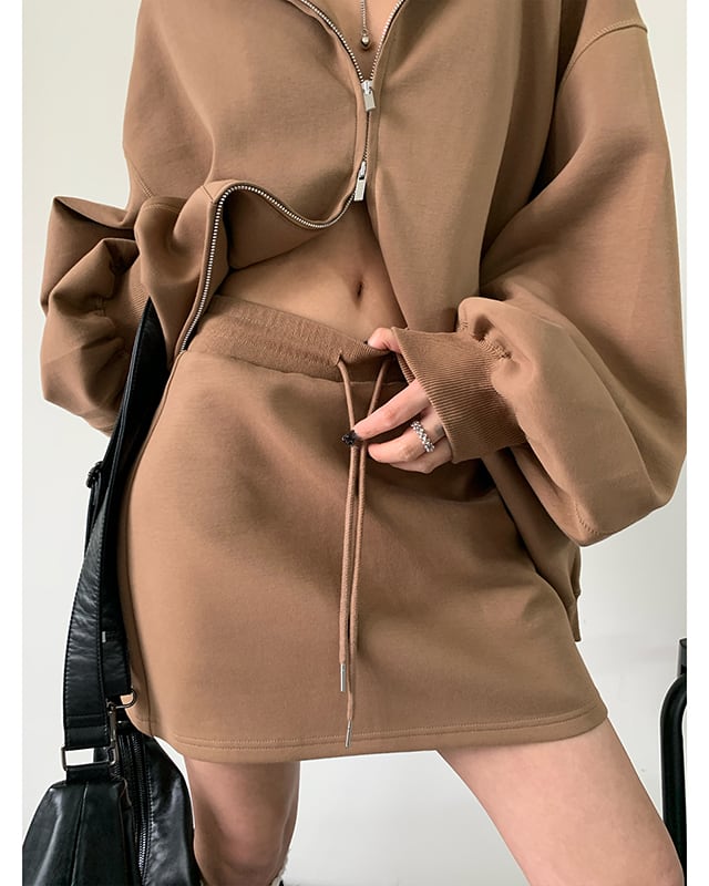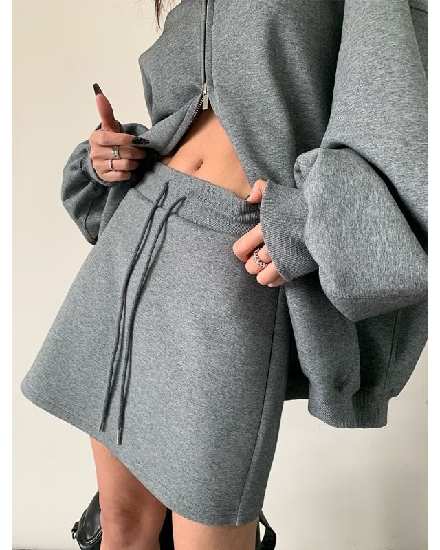 Zip-Up Hoodie & Mini Skirt Set(2color)[A0050]