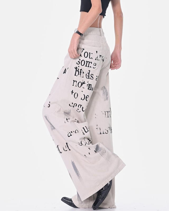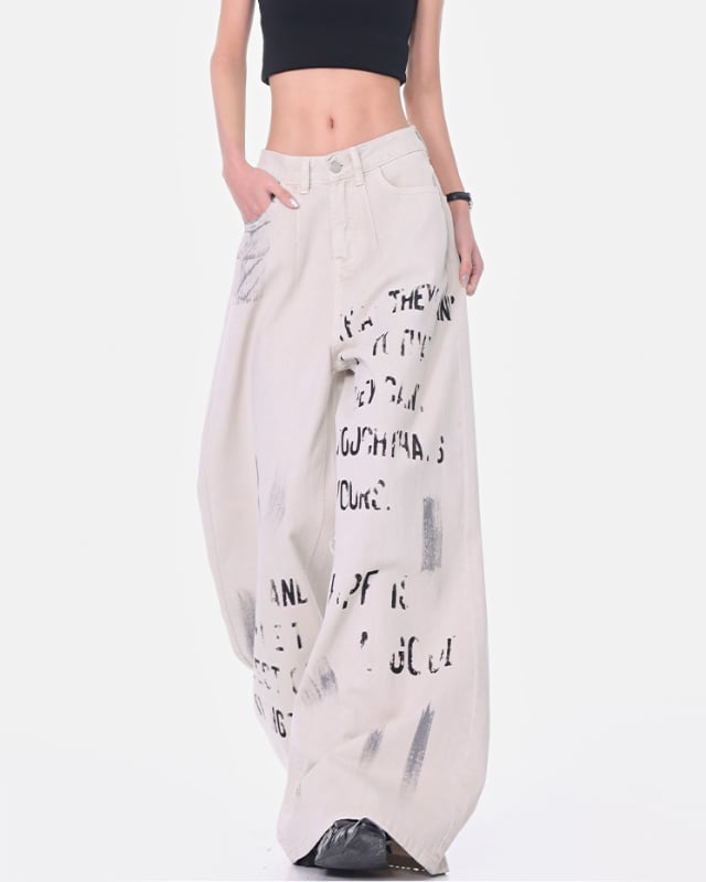 Wide Denim Pants With Graffiti Logo[A0153]