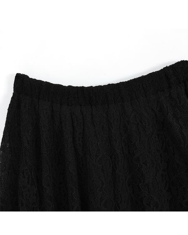 Lace Mesh Midi Skirt Set[A0231]