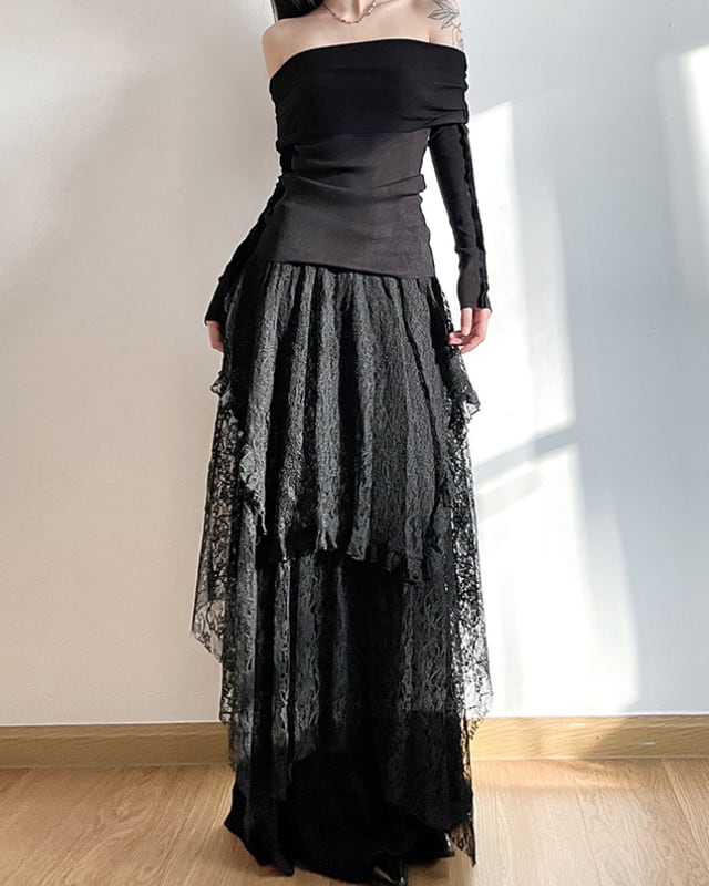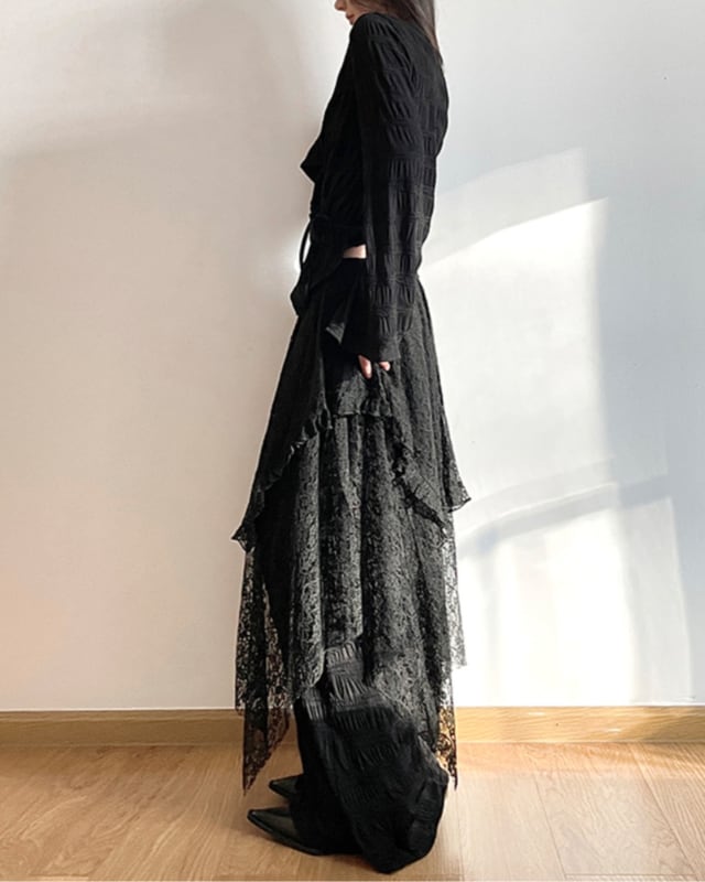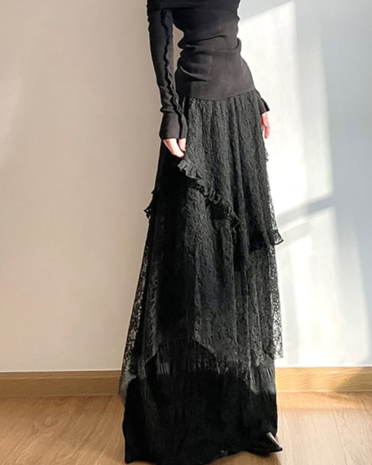Asymmetric Lace Layered Skirt[A0380]