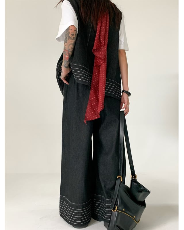 Boho Denim Vest Set[A0248]