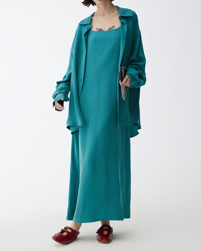 キャミワンピースとビッグシルエットシャツの2点セットで、単品使いもでき着回し力抜群です。