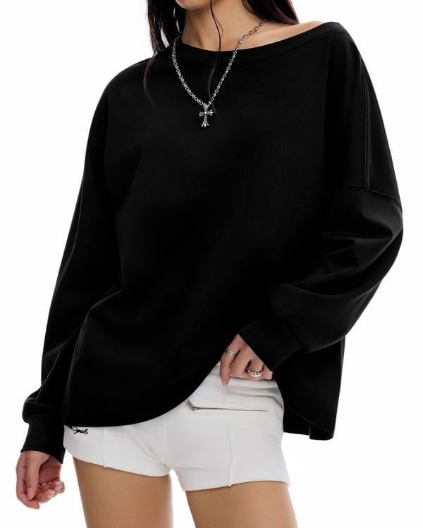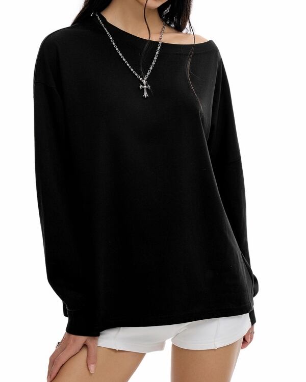 斜めのショルダーデザインがポイントの、シンプルながら洗練されたTシャツです。