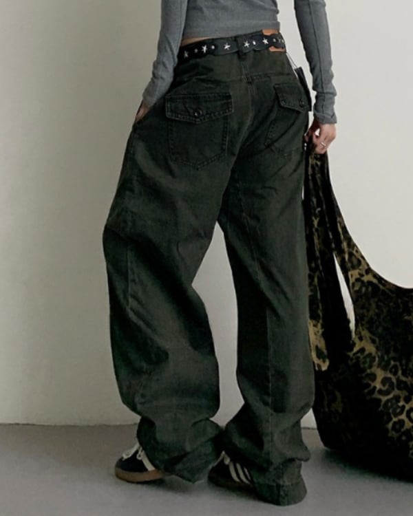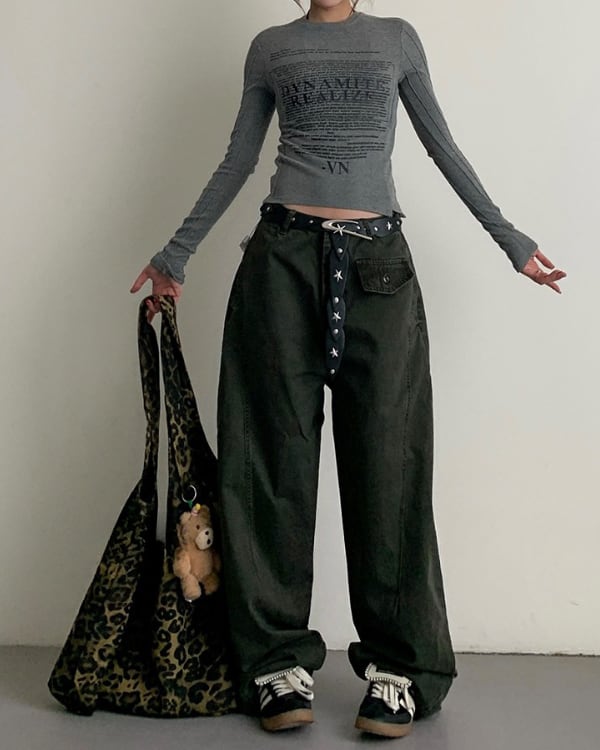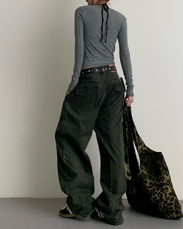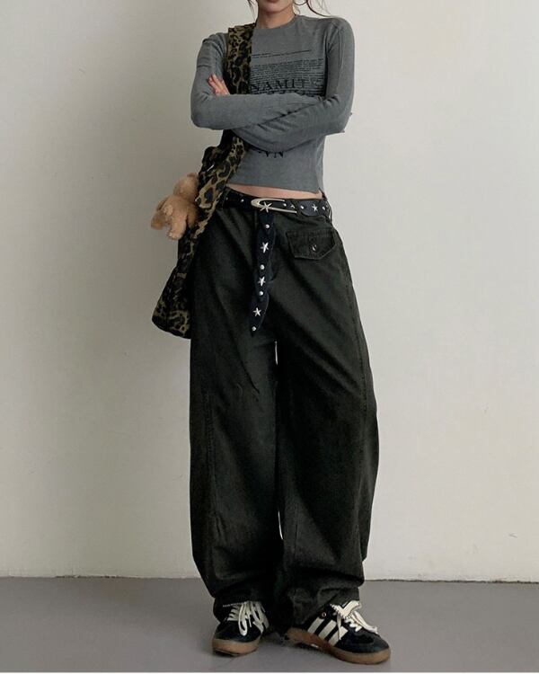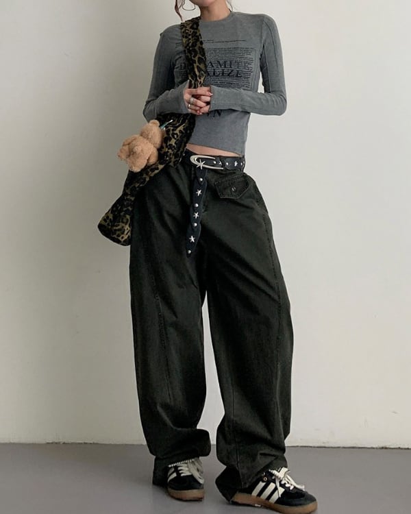 クロップド丈トップスや厚底スニーカーと合わせて、旬なストリートコーデに。