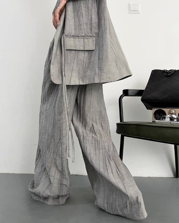 Textured Vest Wide Pants Setup[A0393]