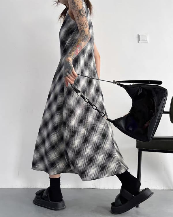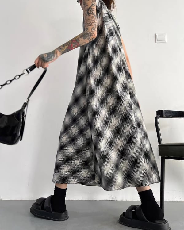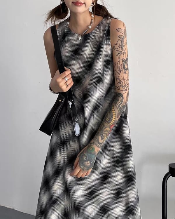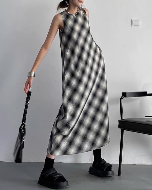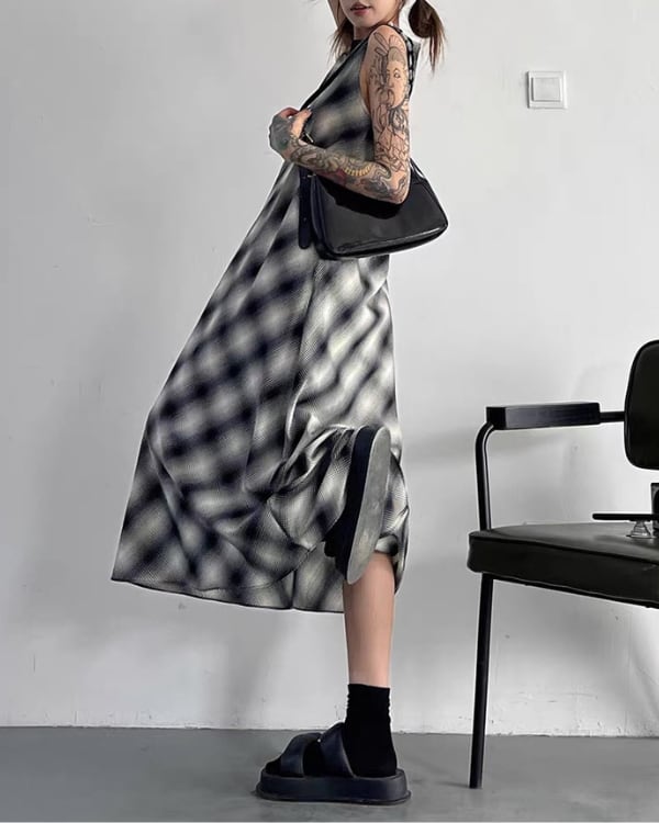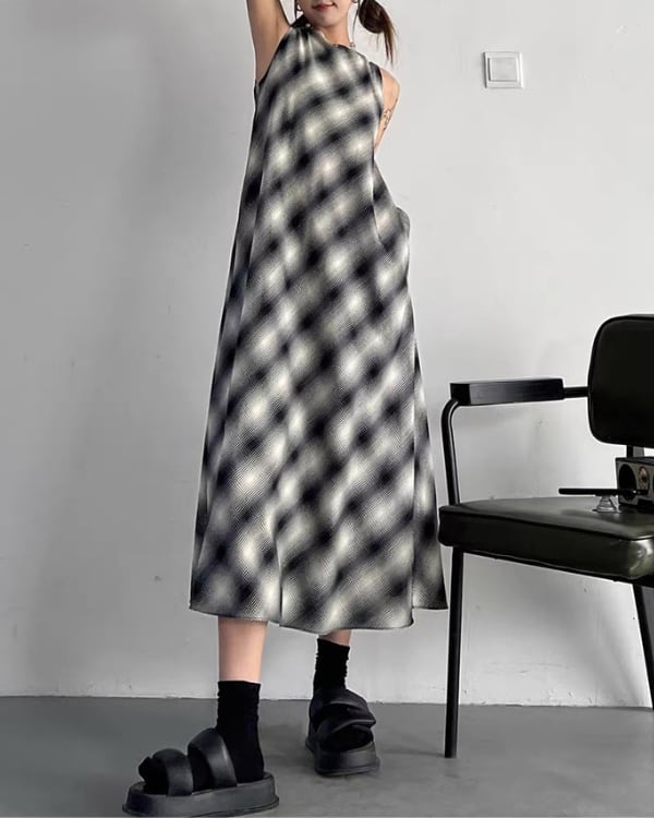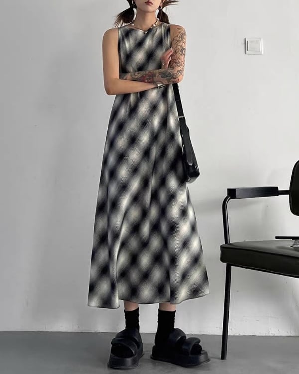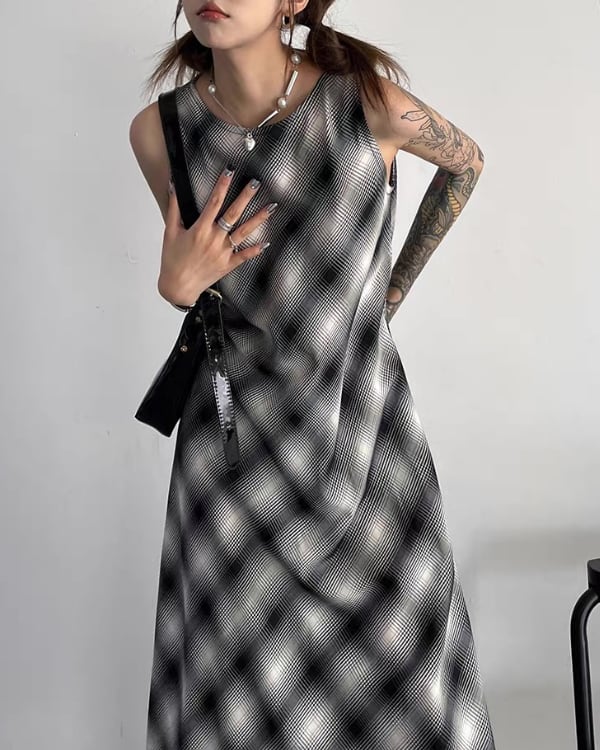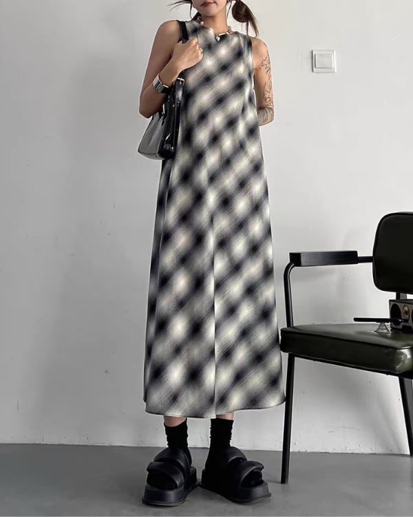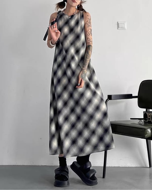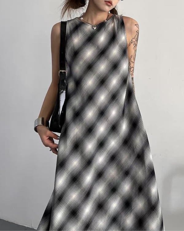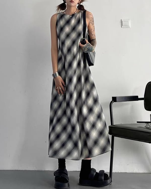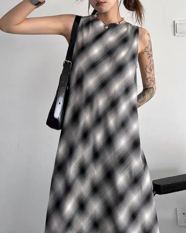 Blur Check Sleeveless One-piece[A0395]