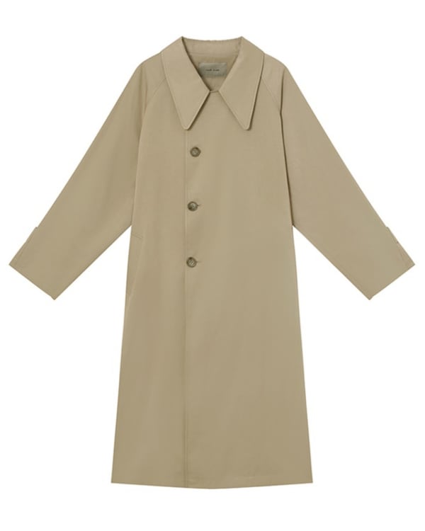 ゆとりのあるシルエットに仕上げたワイドカラーのロングコート。ウエストベルトや袖タブなどシンプルな中にさりげないディテールを取り入れています。