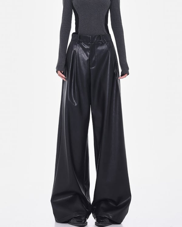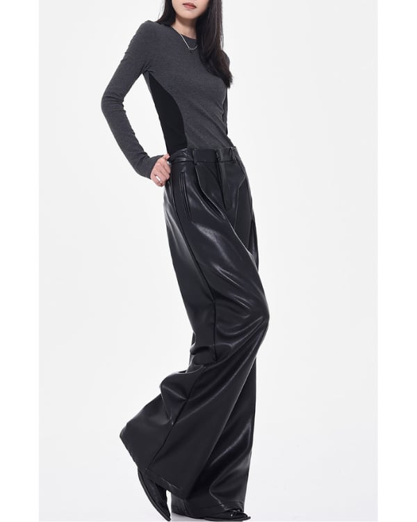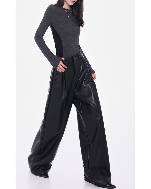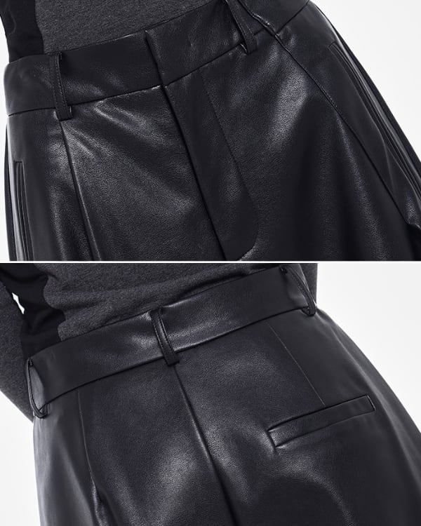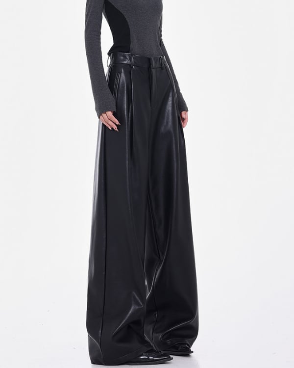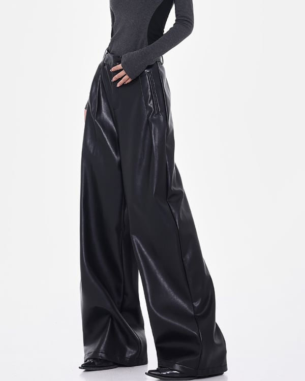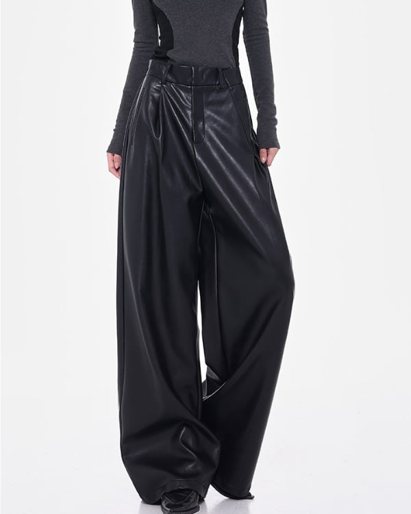 Faux Leather Tuck Wide Pants[A0418]