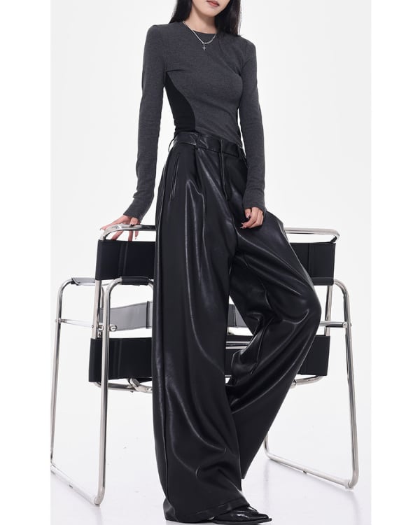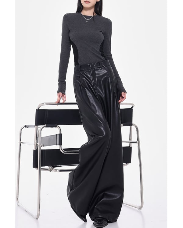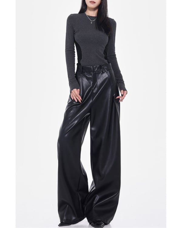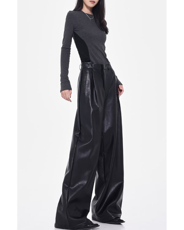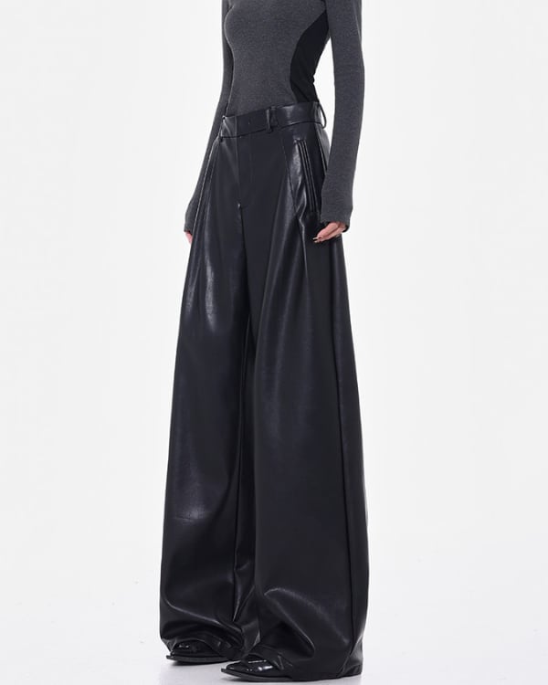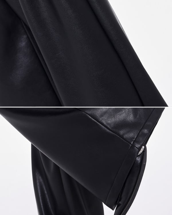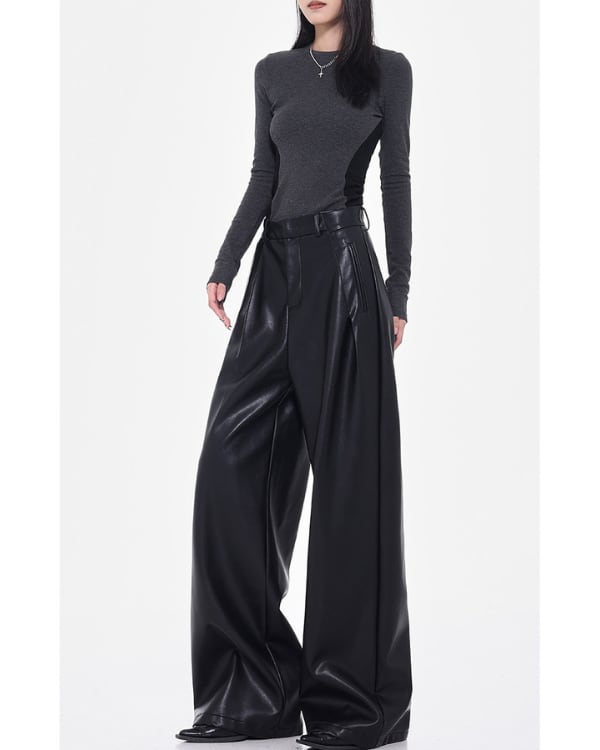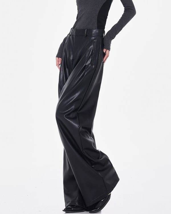 Faux Leather Tuck Wide Pants[A0418]