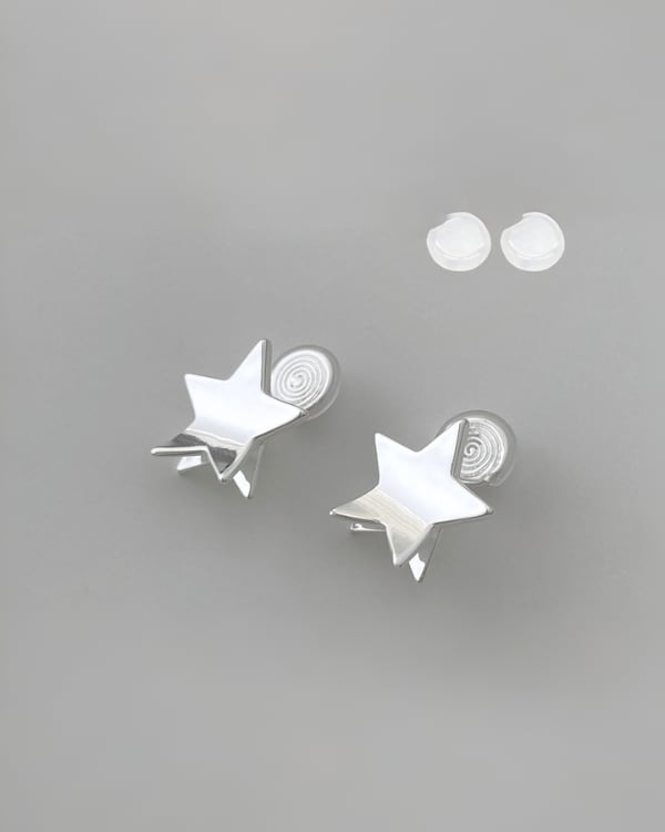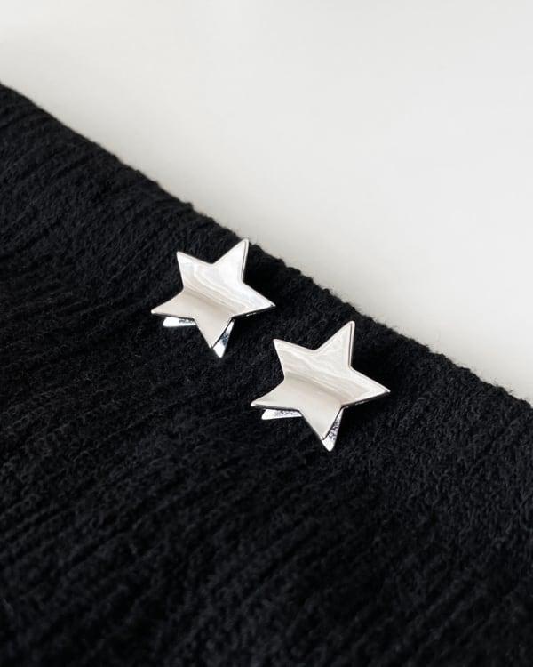 フラットなスタープレートが際立つミニマルなデザインのピアス・イヤリング。シャープなエッジと程よい厚みのあるフォルムが横顔にさりげないアクセントを加えます。