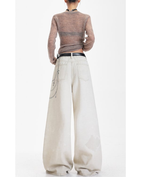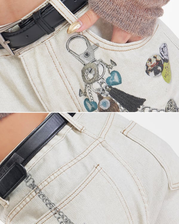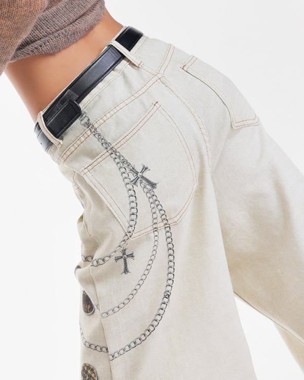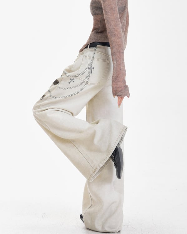 Chain Print Wide Denim Pants[A0427]