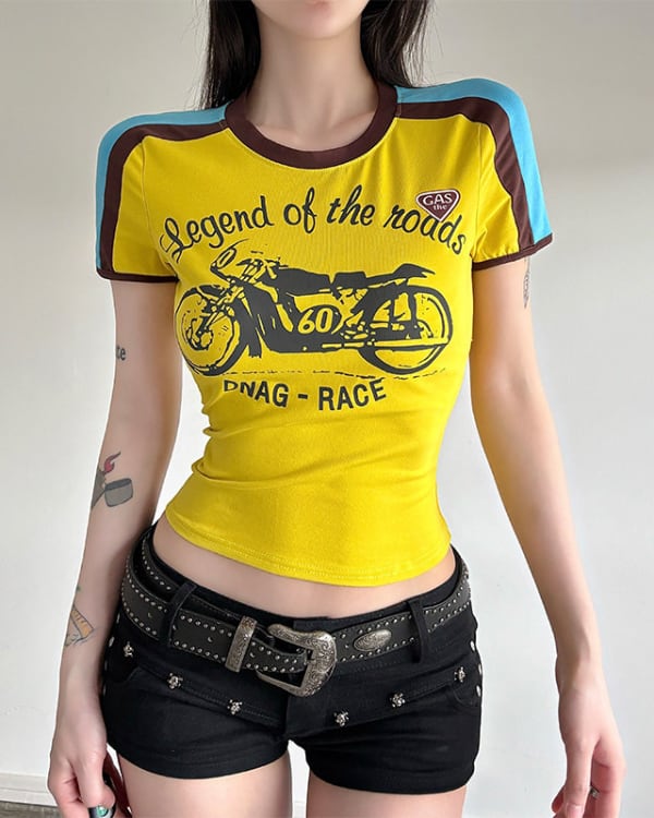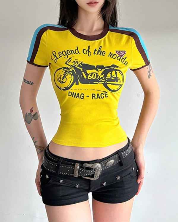 Motor Print Contrast Tee[A0420]