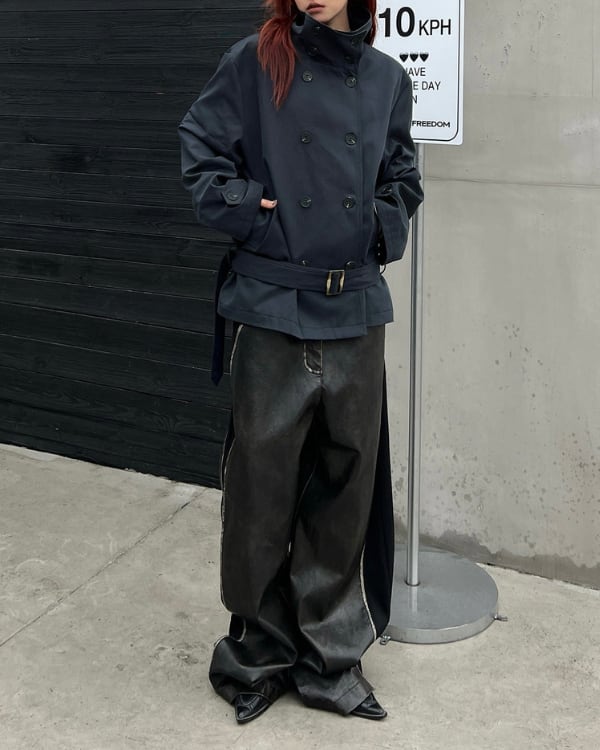 短めの丈感で、重く見えすぎずバランスよく着られる一着です。