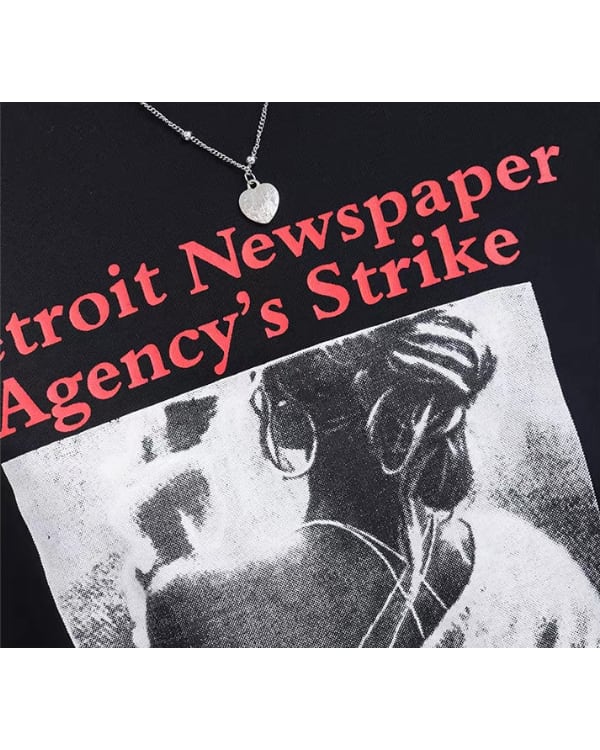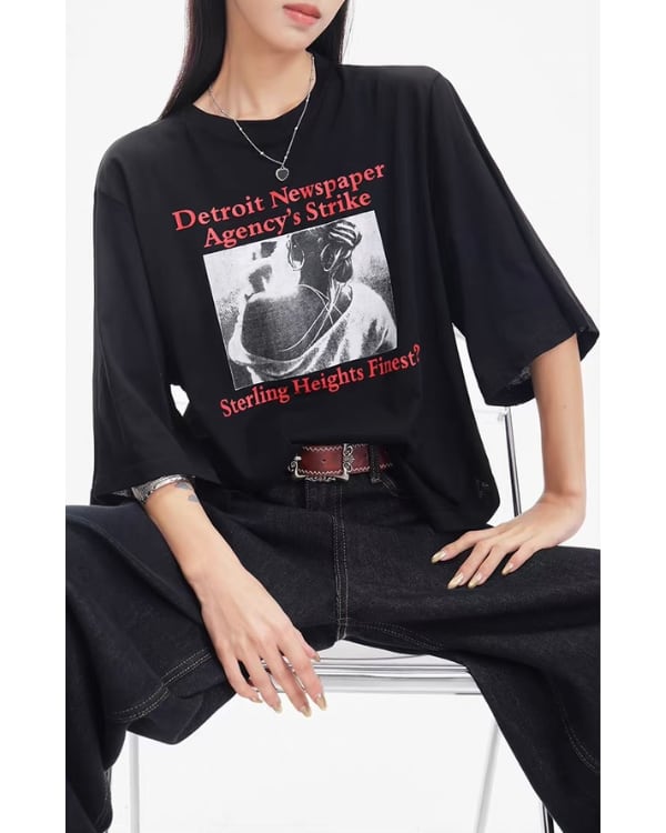 Newspaper Graphic Asymmetry T-Shirt[A0438]