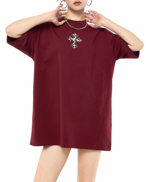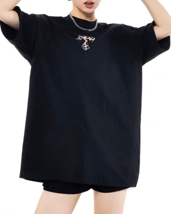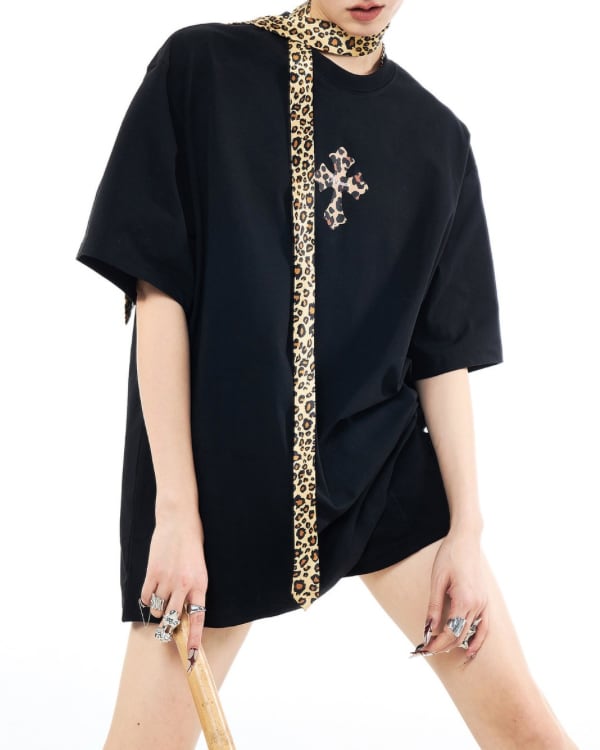 Leopard Cross Oversized T-shirt(4color)[A0440]