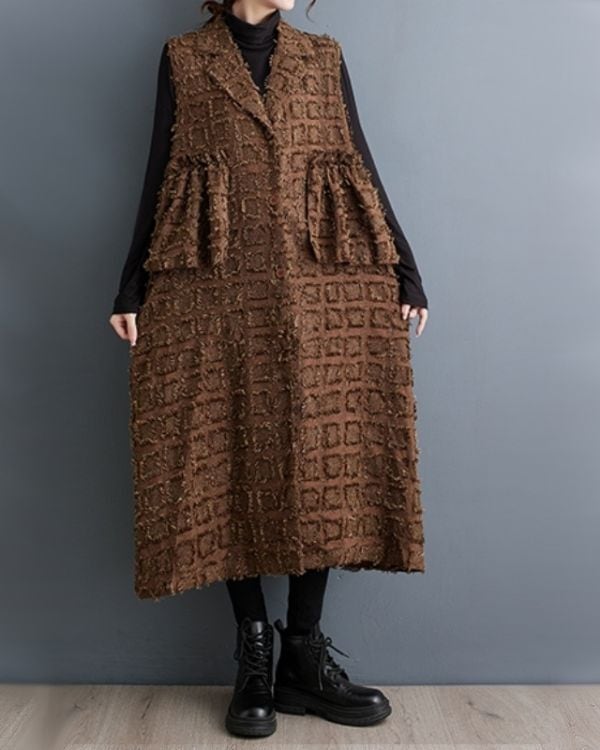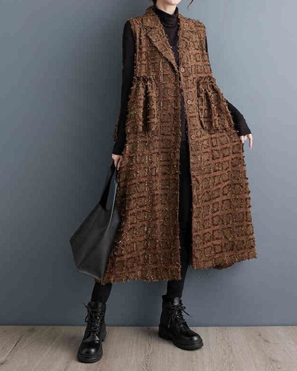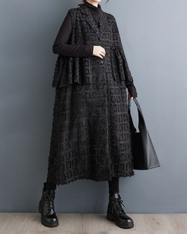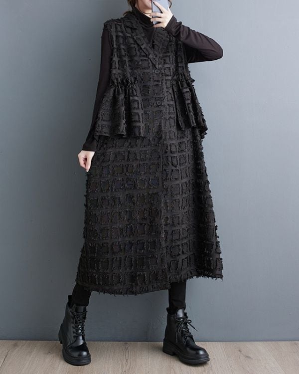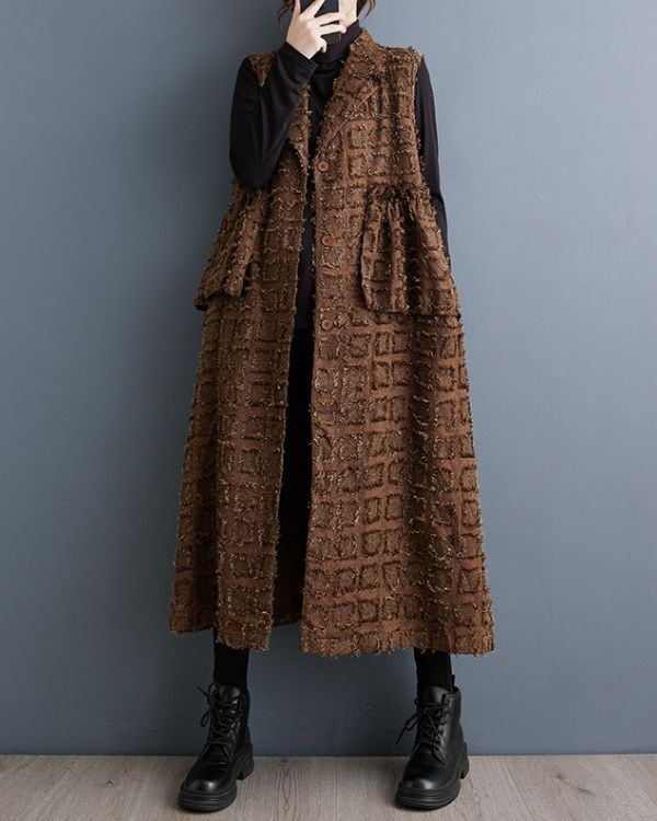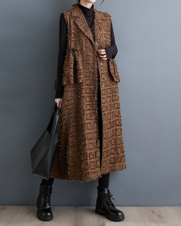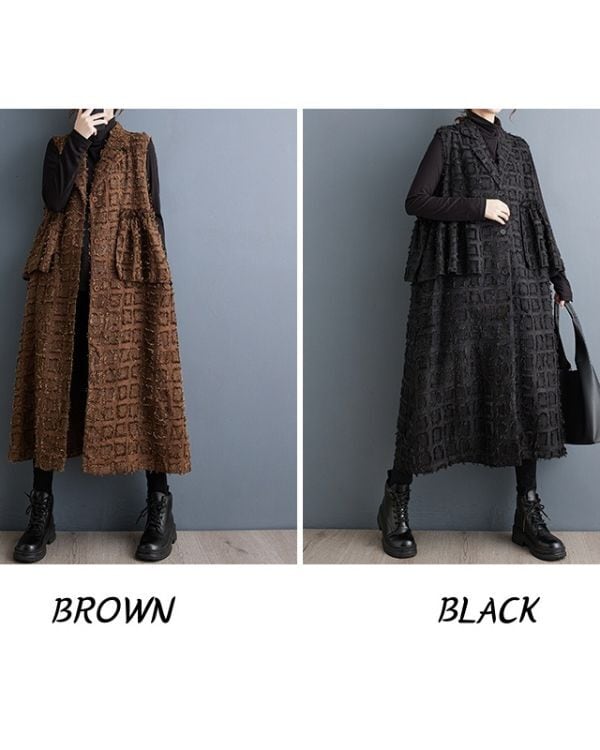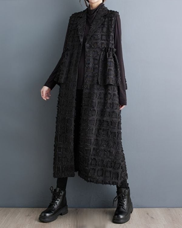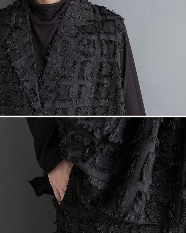 Elegant Cut Jacquard Long Gilet(2color)[A0010]