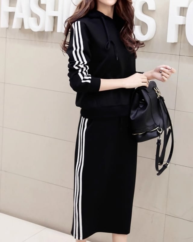 Track Line Cropped Hoodie & Tight Skirt[A0008]